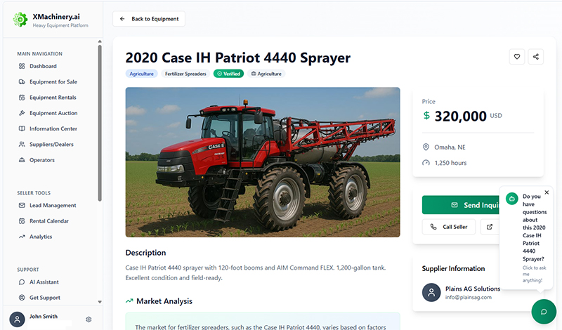 Managing inventory and responding to buyer inquiries has never been easier or more efficient on XMachinery. Our intuitive platform, powered by cutting-edge artificial intelligence, streamlines the process. Sellers can effortlessly list and sell their machinery while leveraging AI tools for a seamless experience, maximizing their success. Meanwhile buyers can more effectively procure equipment.